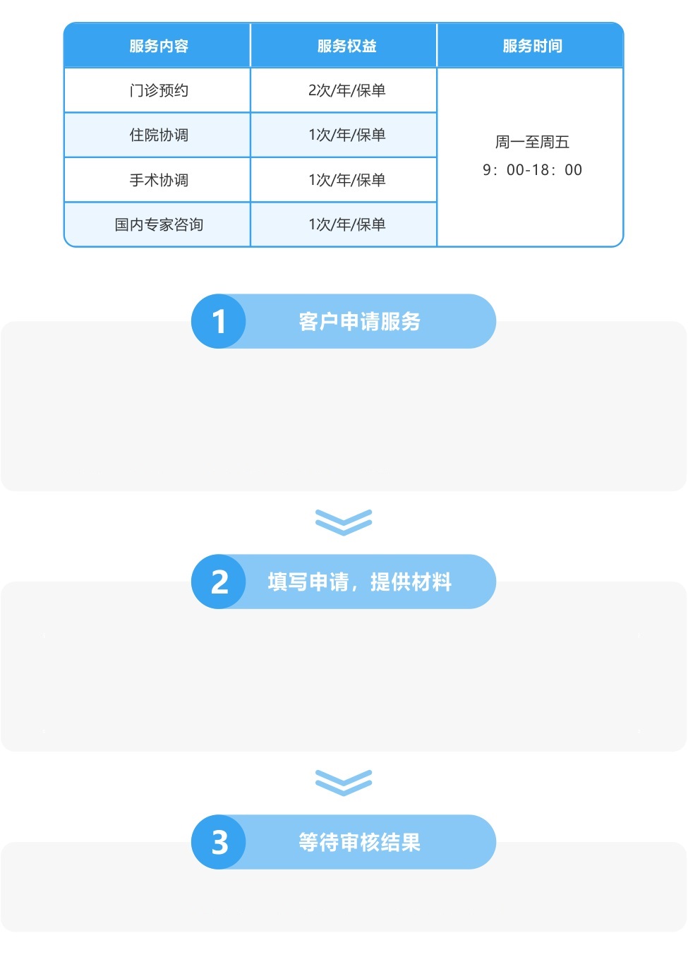 為符合一定服務(wù)條件的客戶提供醫(yī)后隨訪服務(wù),使用醫(yī)后隨訪服務(wù),需滿足針對同一疾病已對應(yīng)申請前述門診預約、住院協(xié)調(diào)、手術(shù)協(xié)調(diào)、國內(nèi)專家咨詢中至少一項服務(wù)。